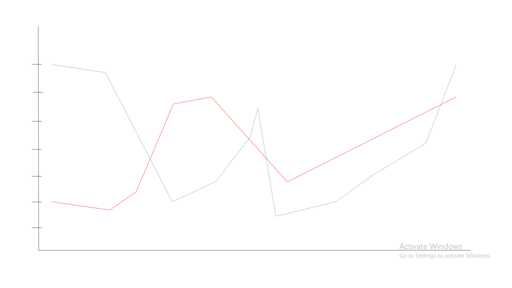 I could read that scene over and over again and never get tired of it. It’s flawless and emotionally packed due to many reasons. But I want you to notice one thing. Notice how the conversation first starts off with Kai being explosively angry and freaking out, and Cinder being sarcastic and trying to play it cool? Then, you watch as Kai shifts drastically to a more vulnerable, pleading state, and Cinder’s armor drops almost instantly. Notice how this shift between agitation and solemnity veers more than twice? Then finally, how Kai jumps back to excitement, and Cinder’s sarcasm turns to panic? Notice how they go from coming at each other’s throats to having the closest thing they can to a love confession within thirty seconds? Here’s a graph of their emotional trajectory (Cinder is the red line and Kai is the blue one):